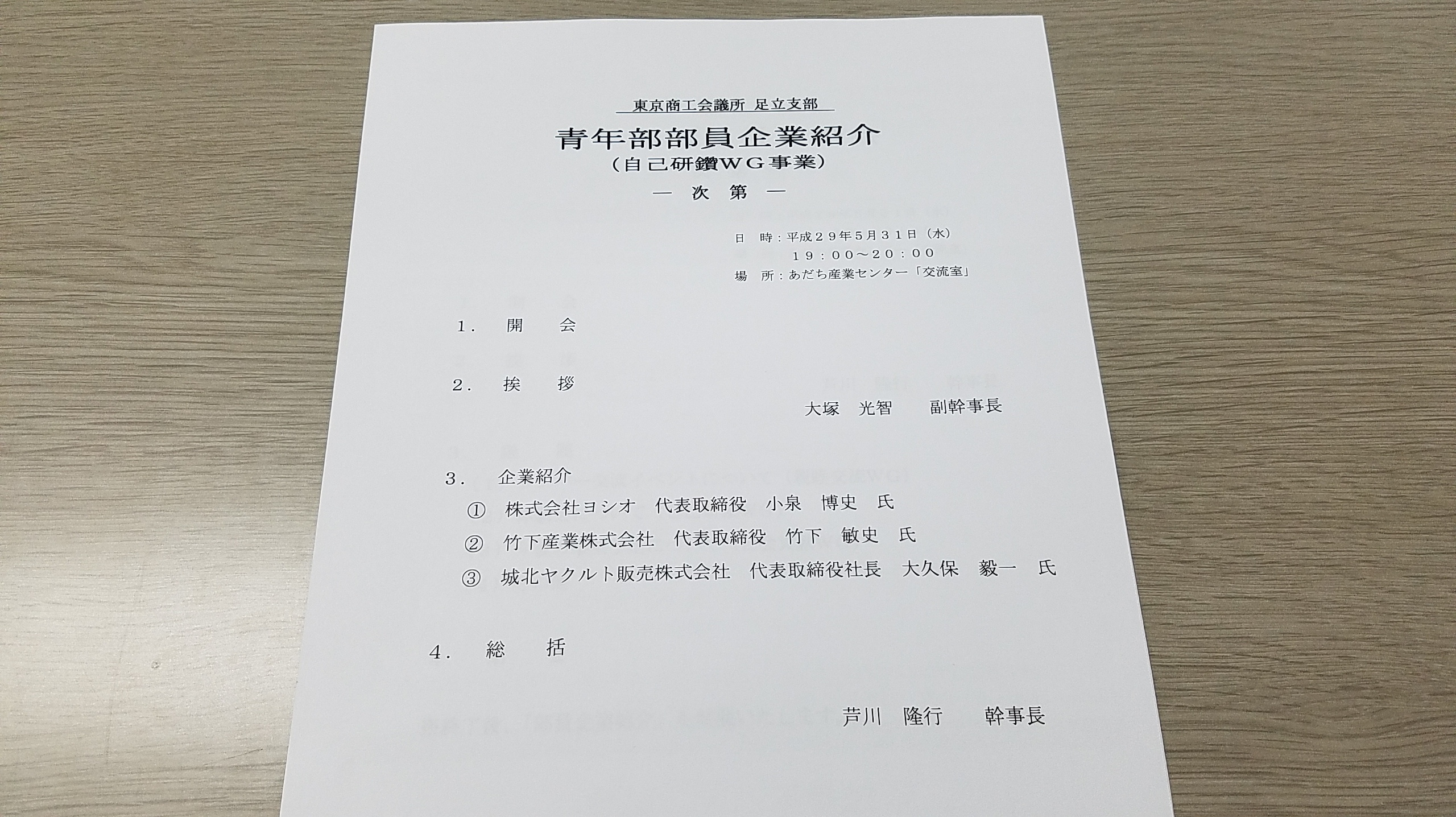 平成29年9月14日、東京商工会議所足立支部青年部9月例会が開催されました。